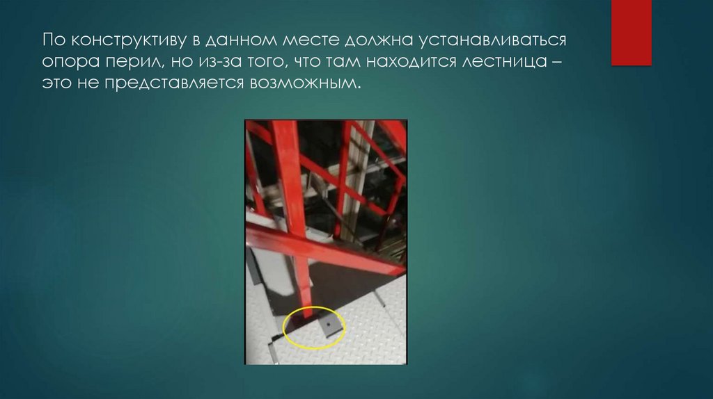 По конструктиву в данном месте должна устанавливатьсяопора перил, но из-за того, что там находится лестница –