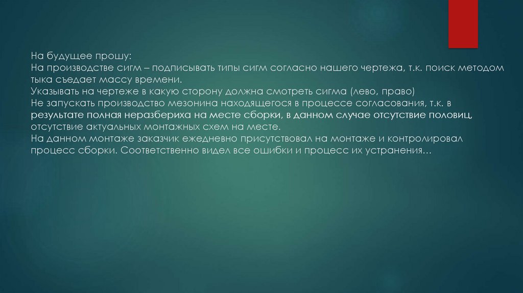 4. При подготовке монтажных схем не была предоставлена схема раскладки пола – запрос – ожидание – потеря времени.