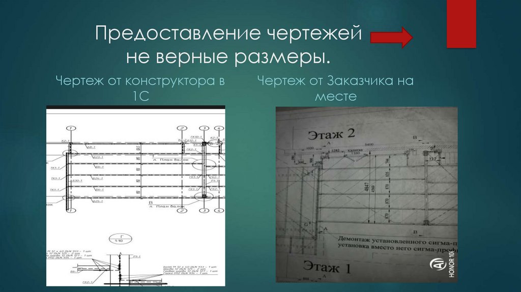 Предоставление чертежейне верные размеры.