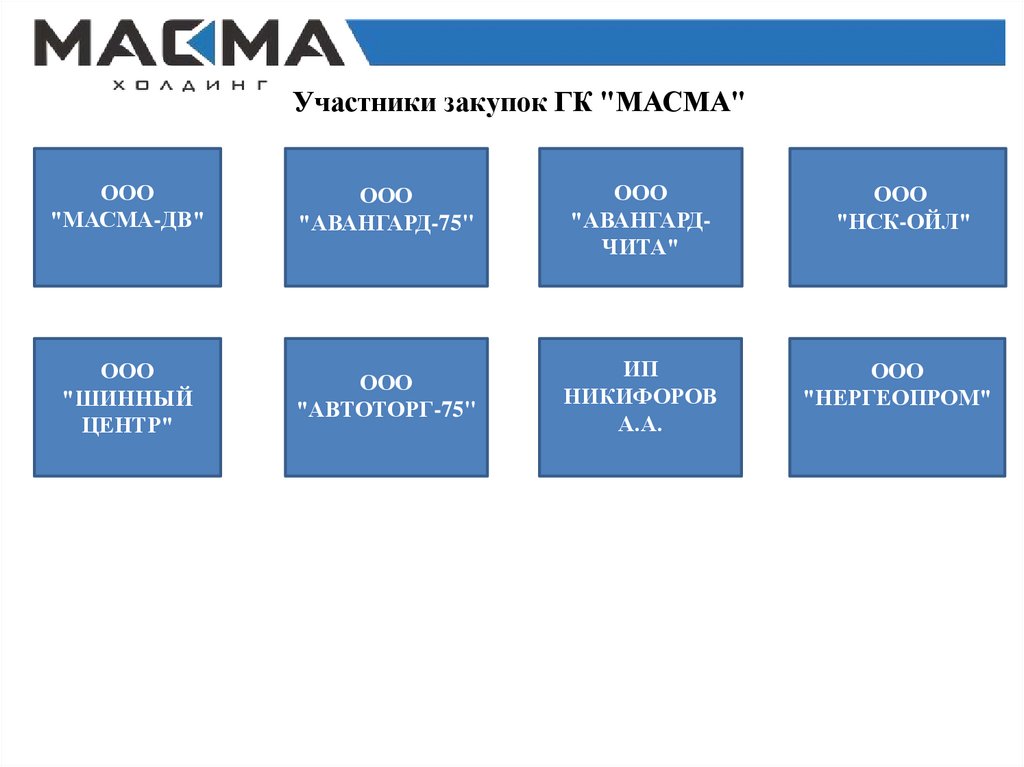 Участники закупок ГК "МАСМА"ООО