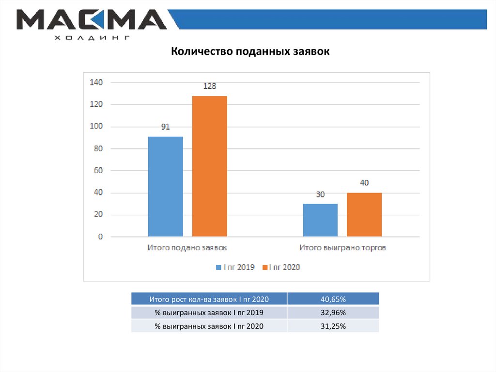 Количество поданных заявокИтого рост кол-ва заявок I пг 2020