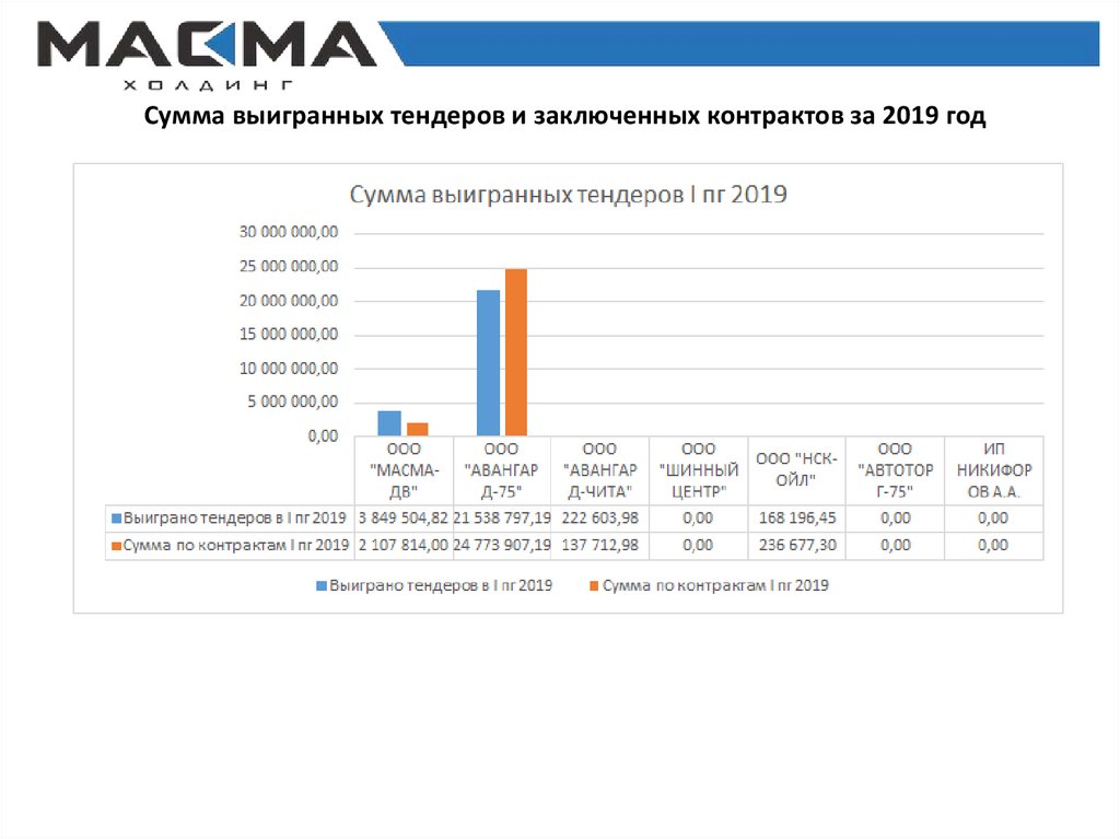 Сумма выигранных тендеров и заключенных контрактов за 2019 год7.