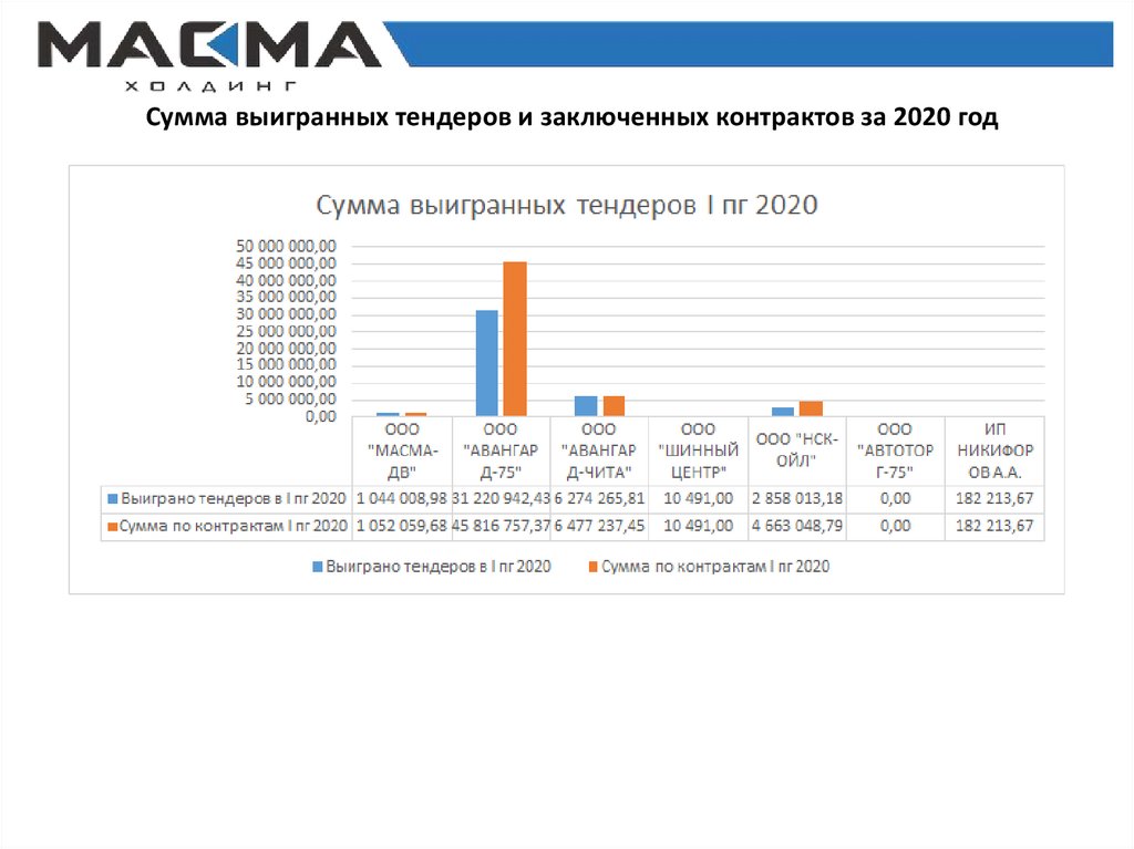 Сумма выигранных тендеров и заключенных контрактов за 2020 год8.
