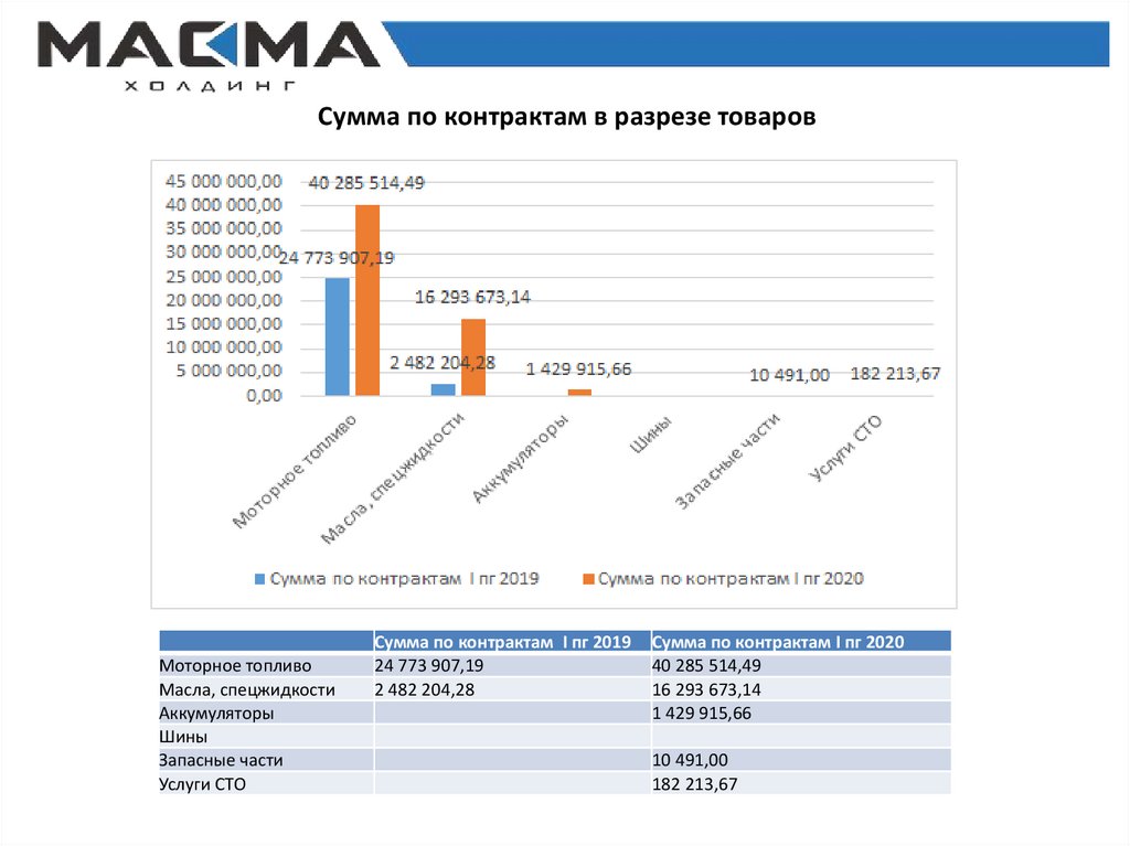 Сумма по контрактам в разрезе товаровМоторное топливо