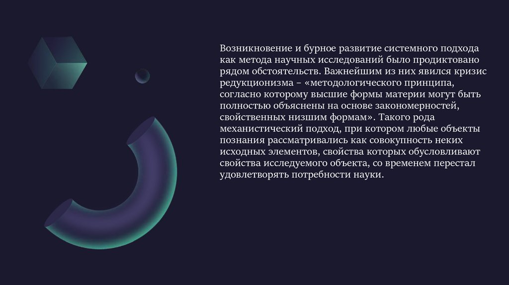 Возникновение и бурное развитие системного подходакак метода научных исследований было продиктовано