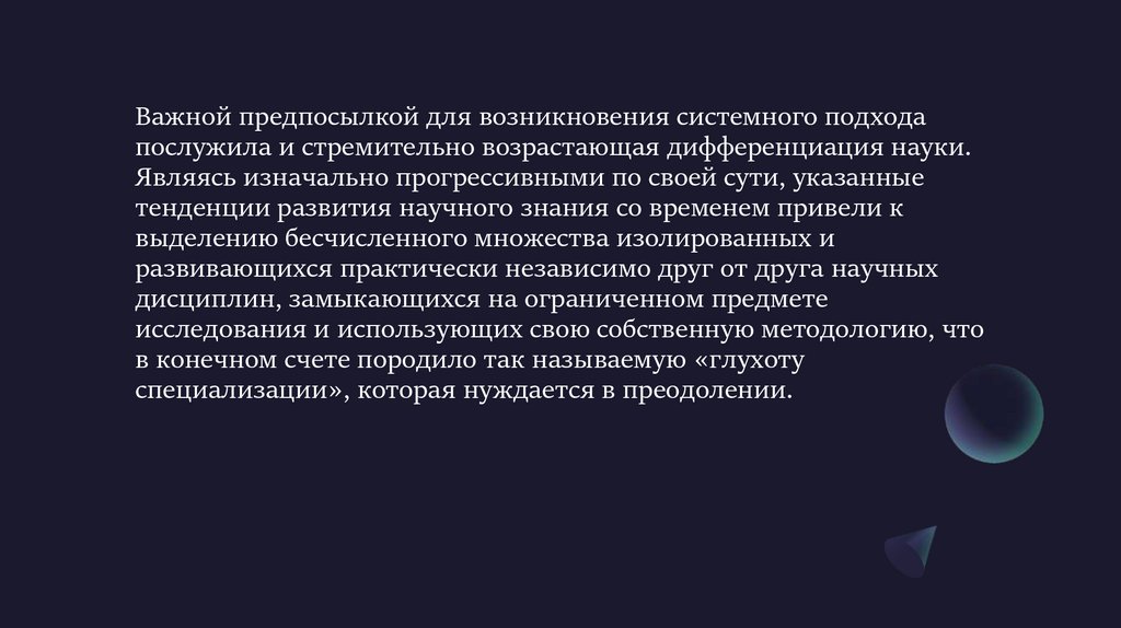 Важной предпосылкой для возникновения системного подходапослужила и стремительно возрастающая дифференциация науки.