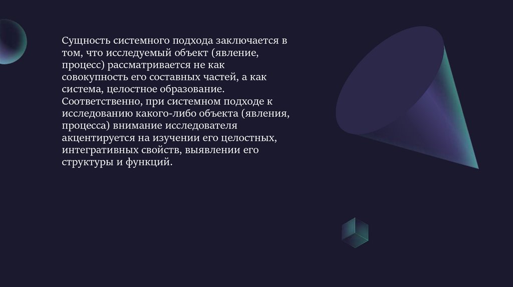 Сущность системного подхода заключается втом, что исследуемый объект (явление,