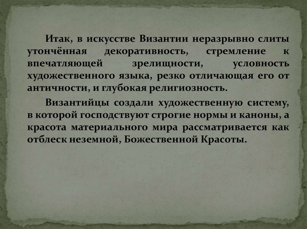 Итак, в искусстве Византии неразрывно слитыутончённая