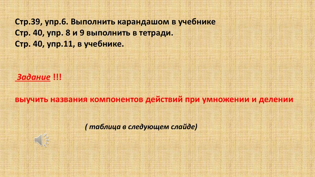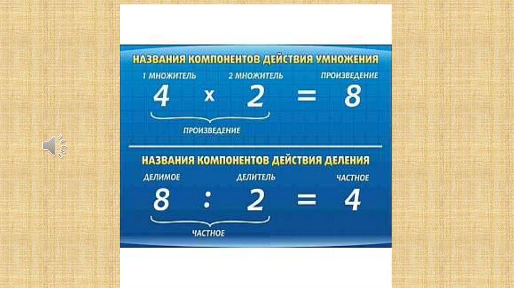 выучить названия компонентов действий при умножении и делении