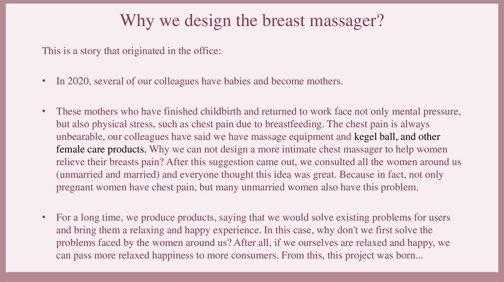 Although the idea of breast massager only came from the request of a postpartum mother beside us,
