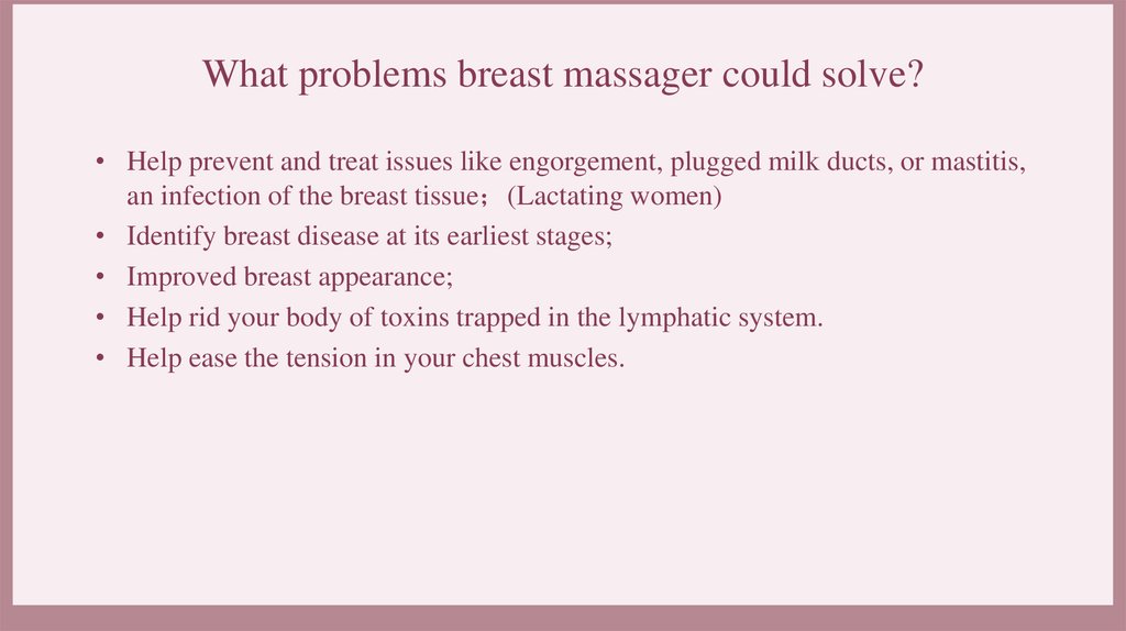 What problems breast massager could solve?• Help prevent and treat issues like engorgement, plugged milk ducts, or mastitis,