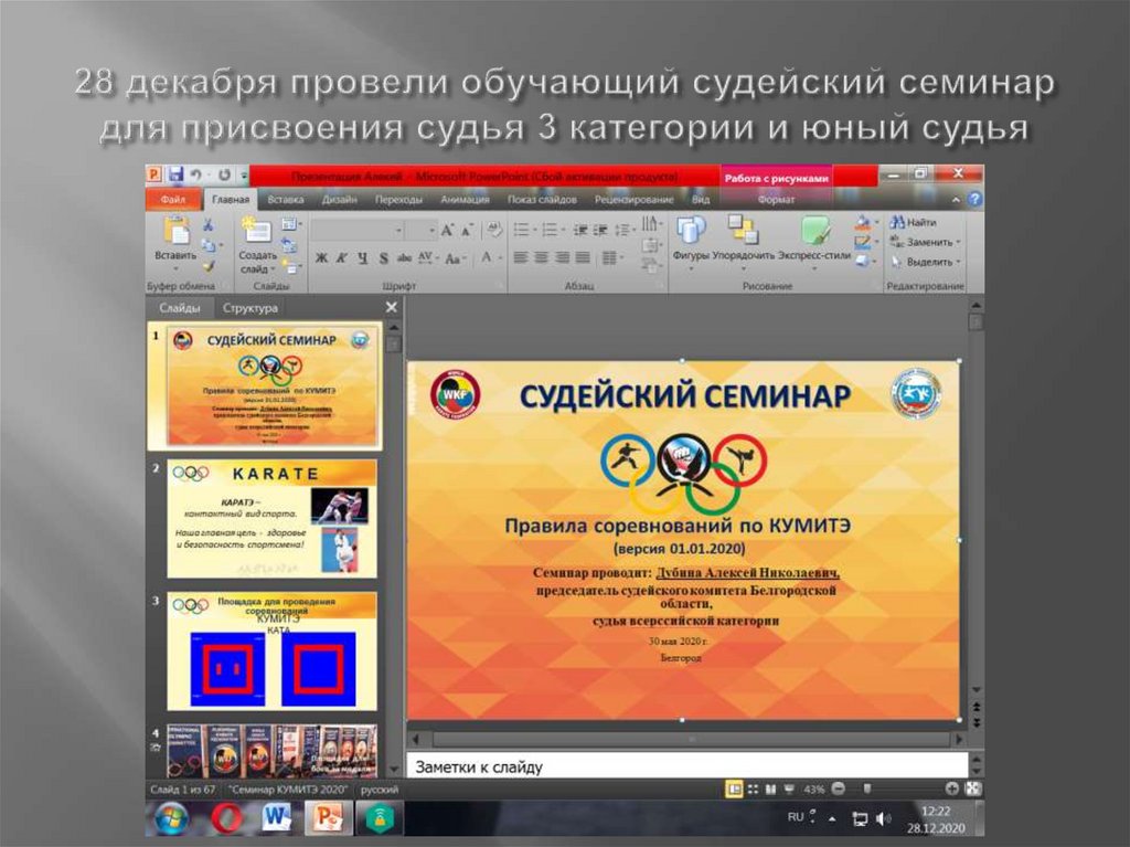 Отчёт о проделанной работе отделения каратэ в 2020 году
