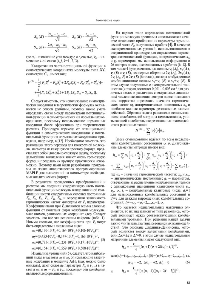 примере молекулы арсина AsH3. Для решения данной задачи разработан пакет программ на аналитическом языке MAPLE, по&