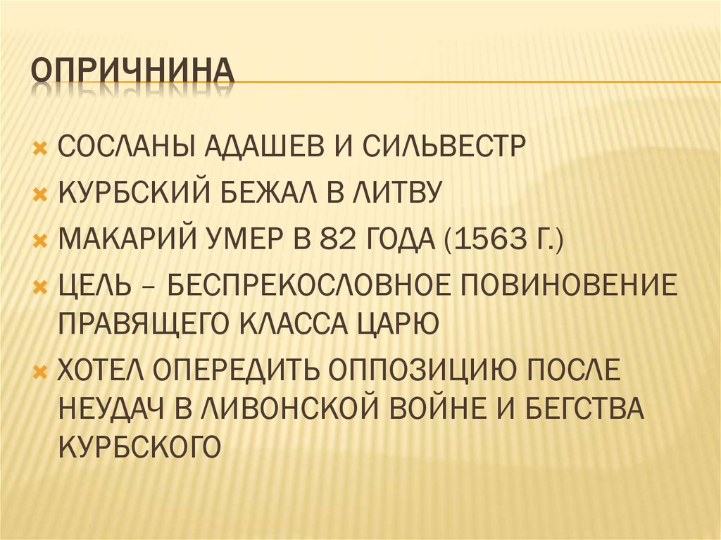 ОПРИЧНИНАСОСЛАНЫ АДАШЕВ И СИЛЬВЕСТР