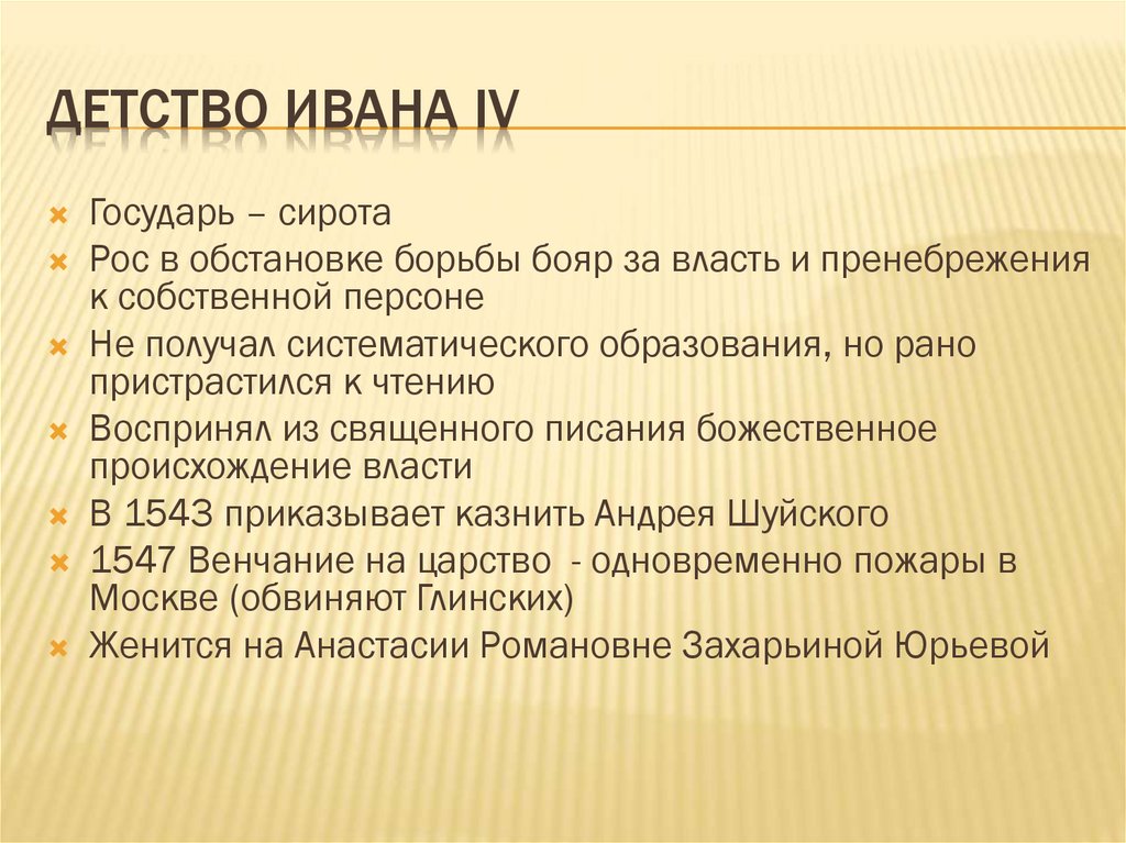 ДЕТСТВО ИВАНА IVГосударь – сирота