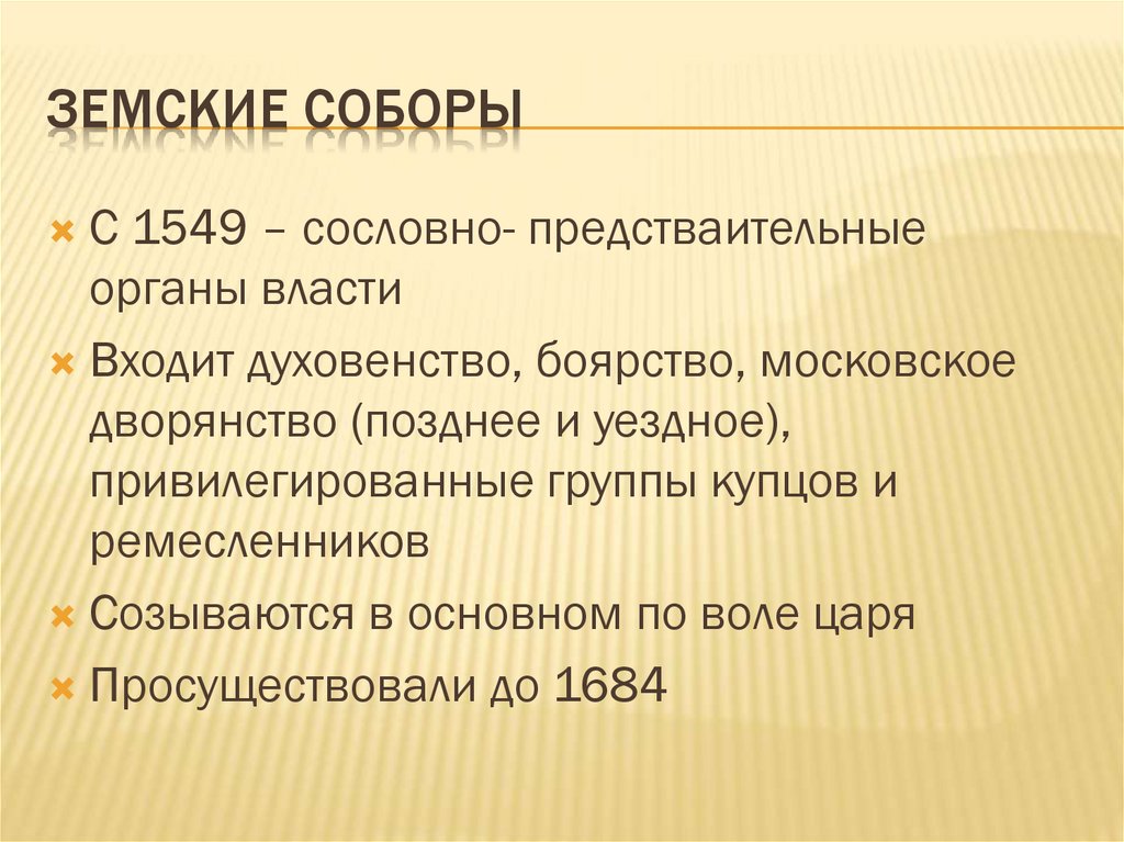 ЗЕМСКИЕ СОБОРЫС 1549 – сословно- предстваительные