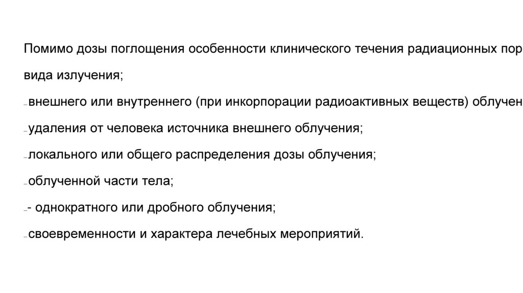 Помимо дозы поглощения особенности клинического течения радиационных поравида излучения;