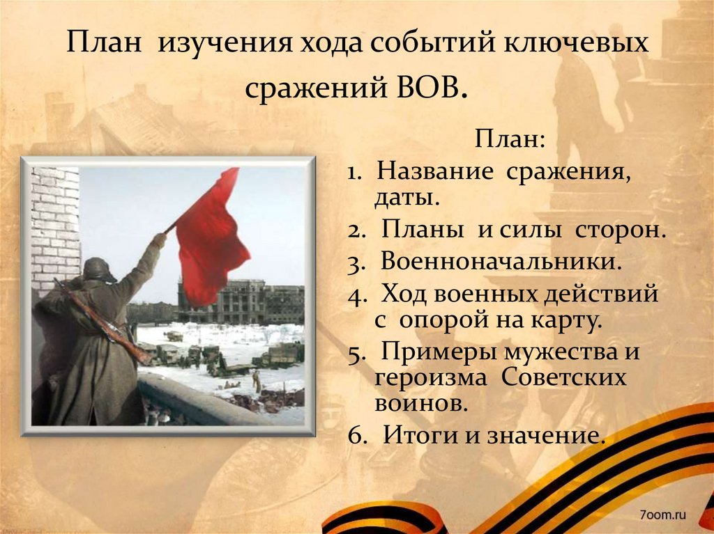 План изучения хода событий ключевыхсражений ВОВ.