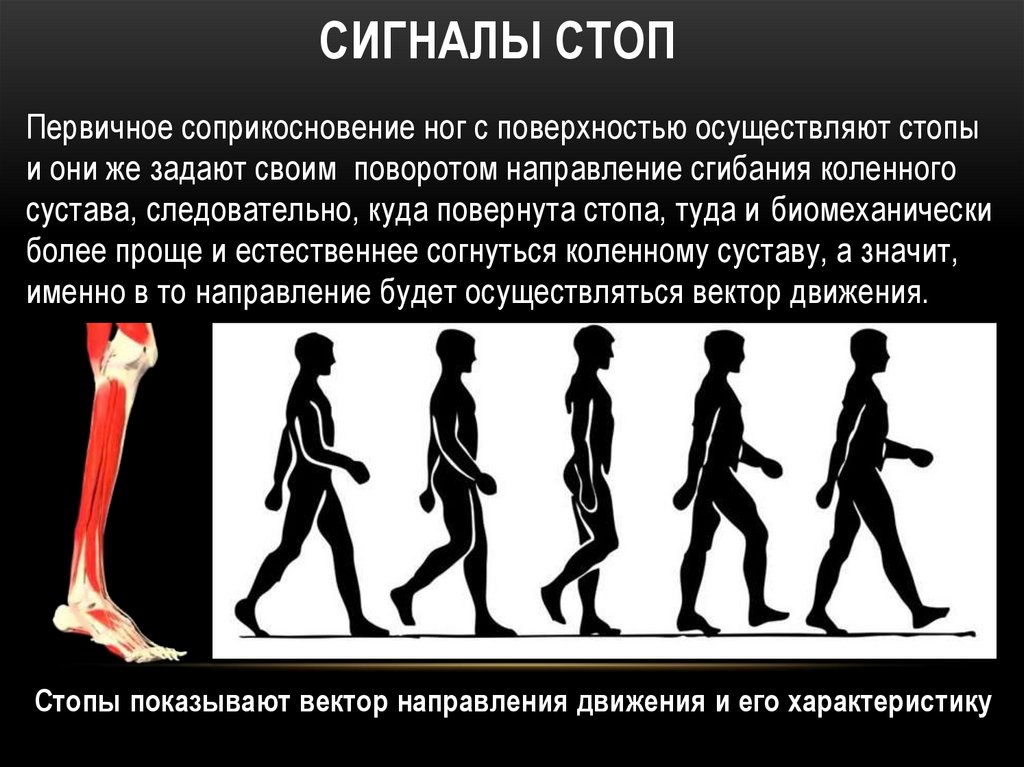 СИГНАЛЫ СТОППервичное соприкосновение ног с поверхностью осуществляют стопы