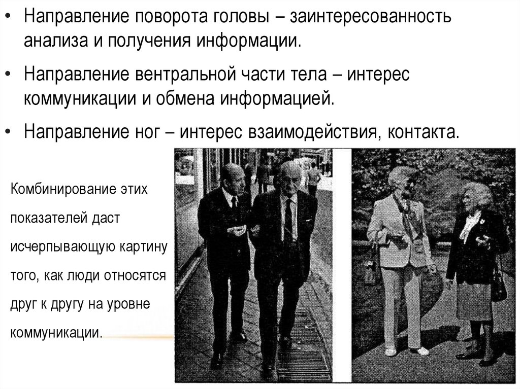 • Направление поворота головы – заинтересованностьанализа и получения информации.