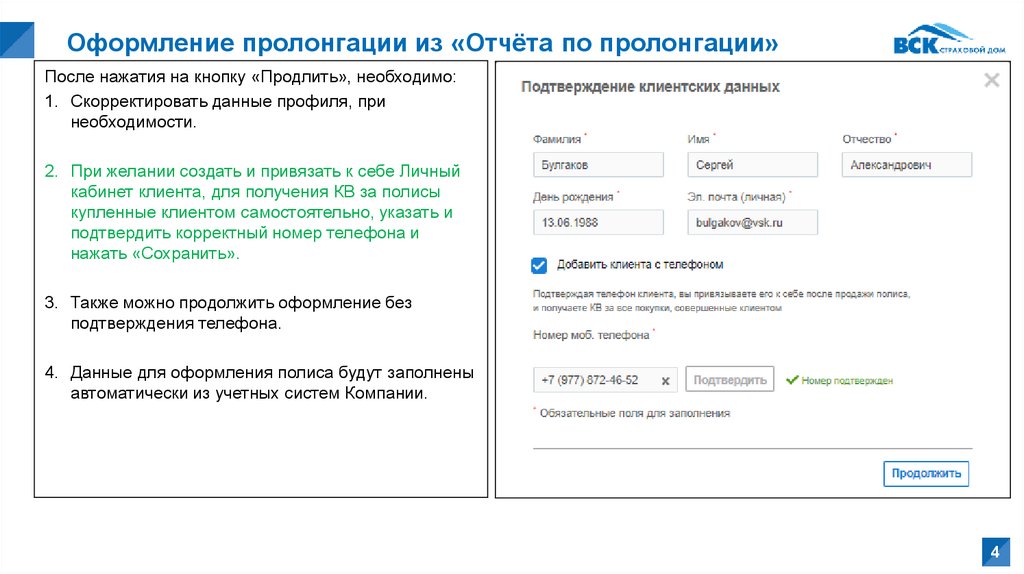 Оформление пролонгации из «Отчёта по пролонгации»После того как данные подтянулись,