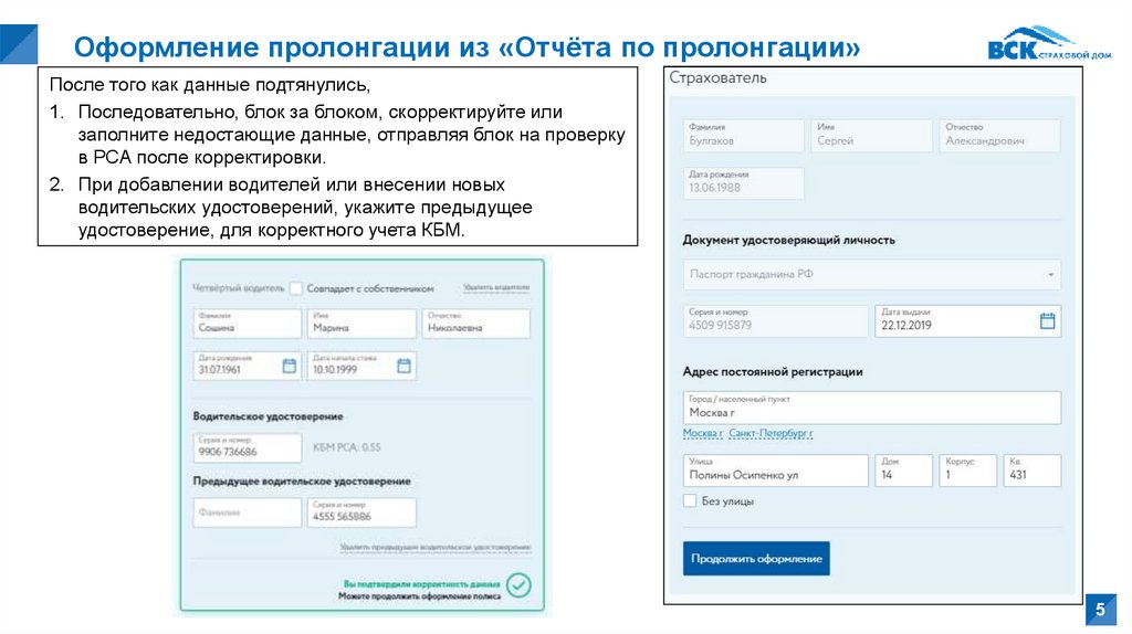 4. При оформлении нового полиса нужно последовательно