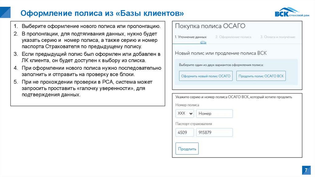 Оформление полиса из «Базы клиентов»1. Выберите оформление нового полиса или пролонгацию.