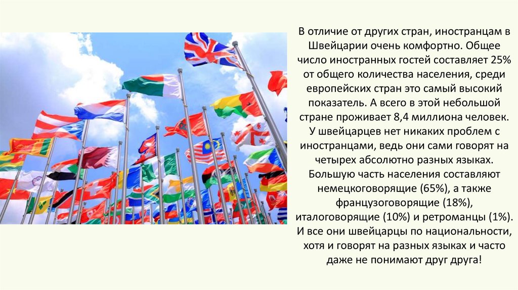 В отличие от других стран, иностранцам вШвейцарии очень комфортно. Общее