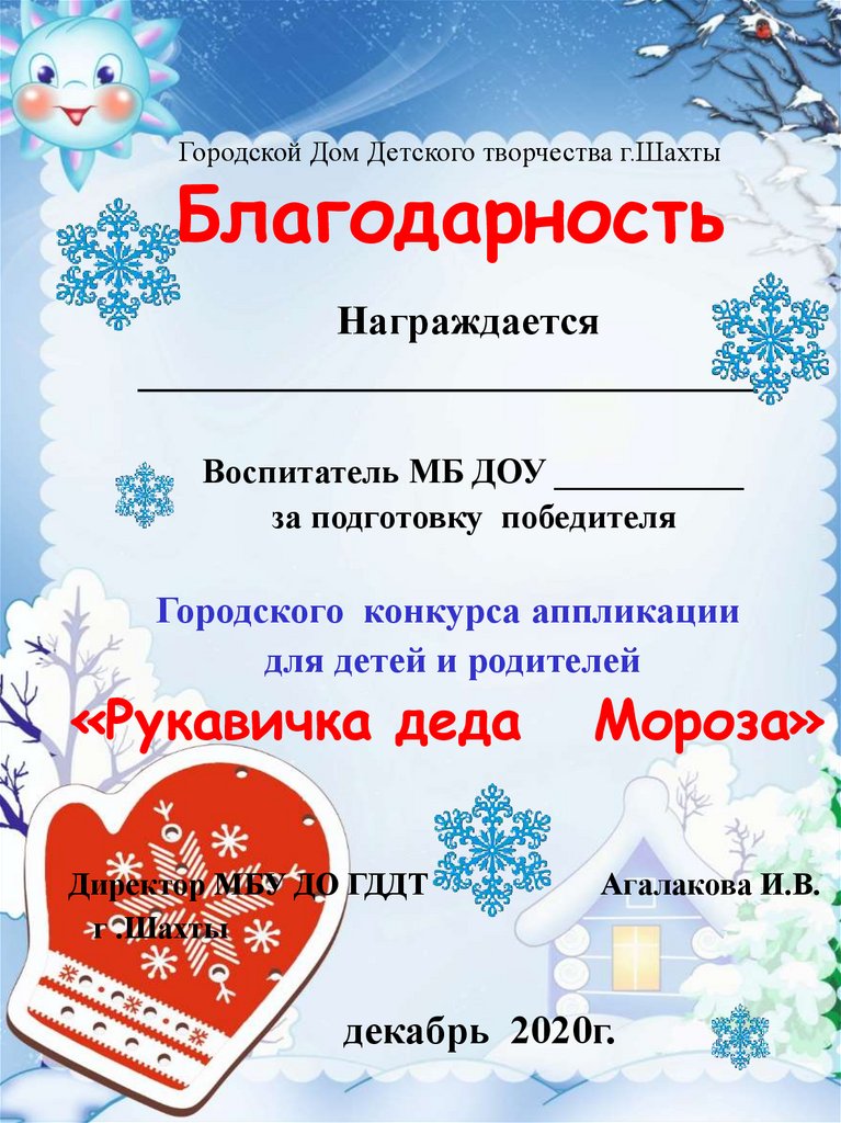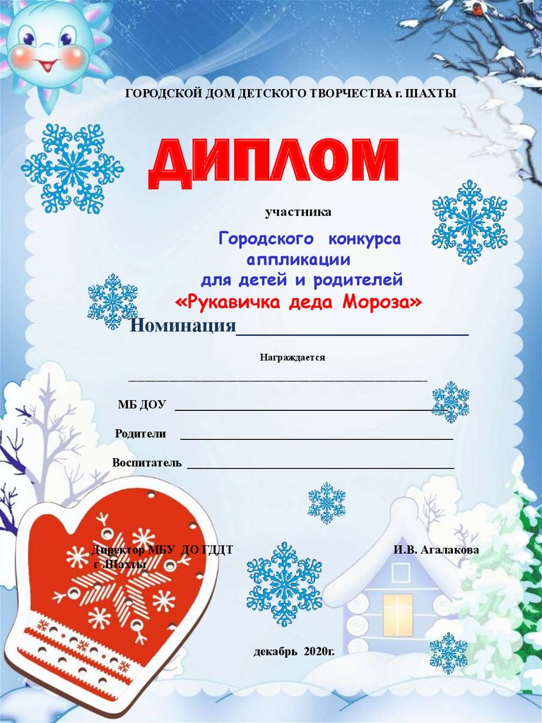 Дипломы. Рукавичка Деда Мороза