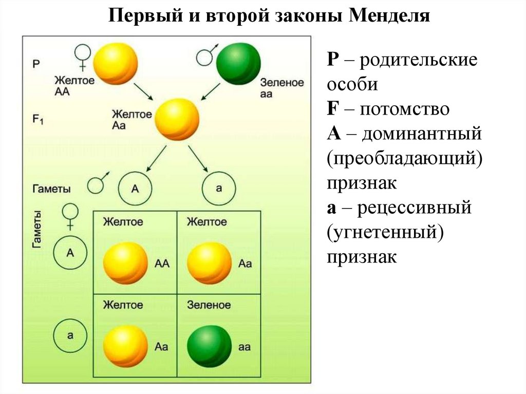 Первый и второй законы МенделяР – родительские