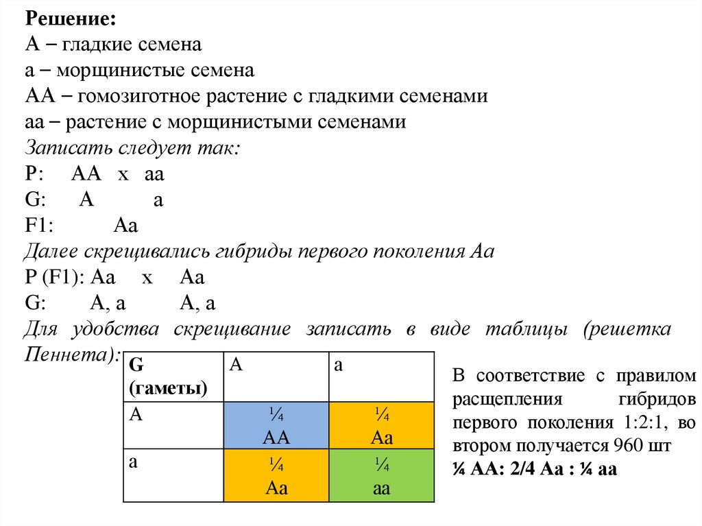 Решение:А – гладкие семена