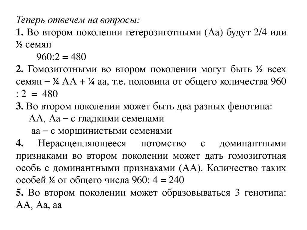 семян – ¼ АА + ¼ аа, т.е. половина от общего количества 960