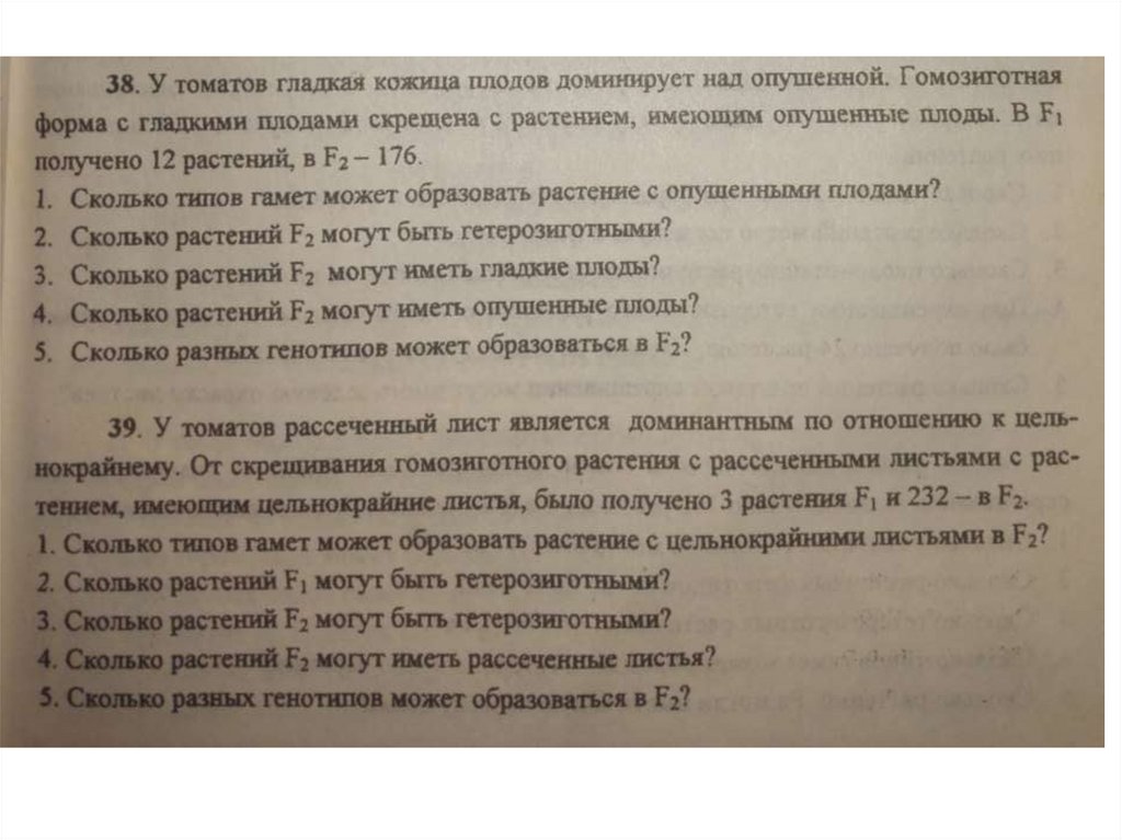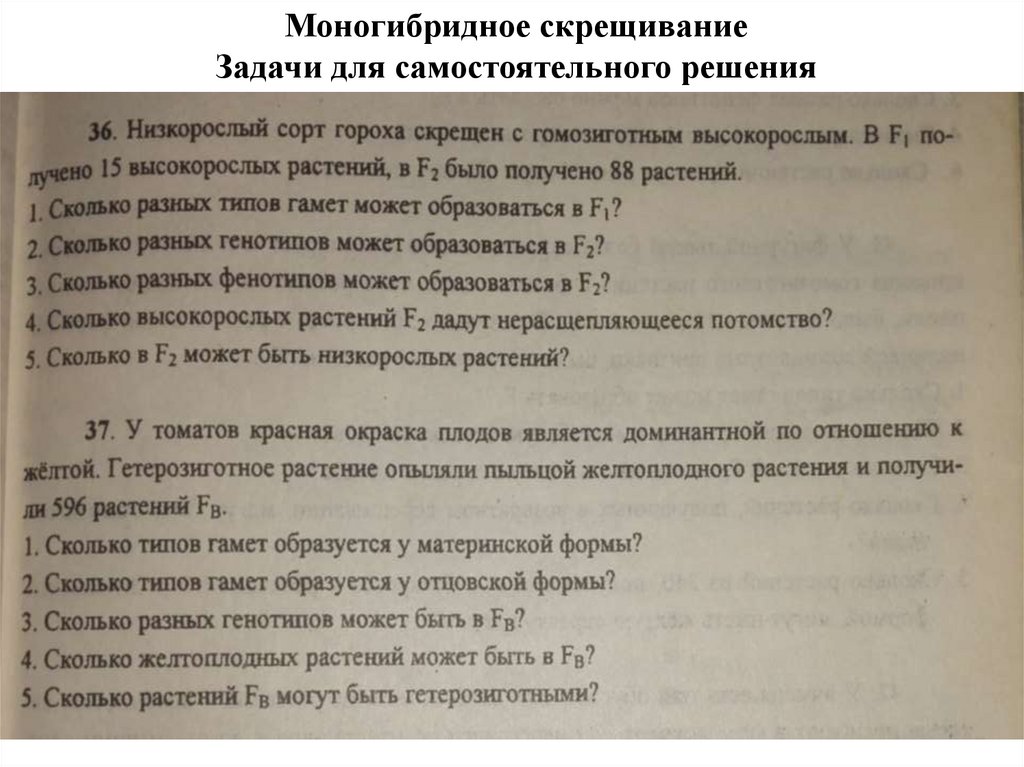 Моногибридное скрещиваниеЗадачи для самостоятельного решения