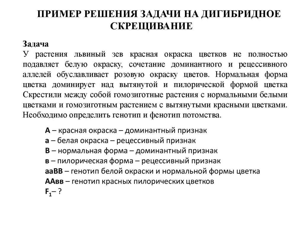 ПРИМЕР РЕШЕНИЯ ЗАДАЧИ НА ДИГИБРИДНОЕСКРЕЩИВАНИЕ