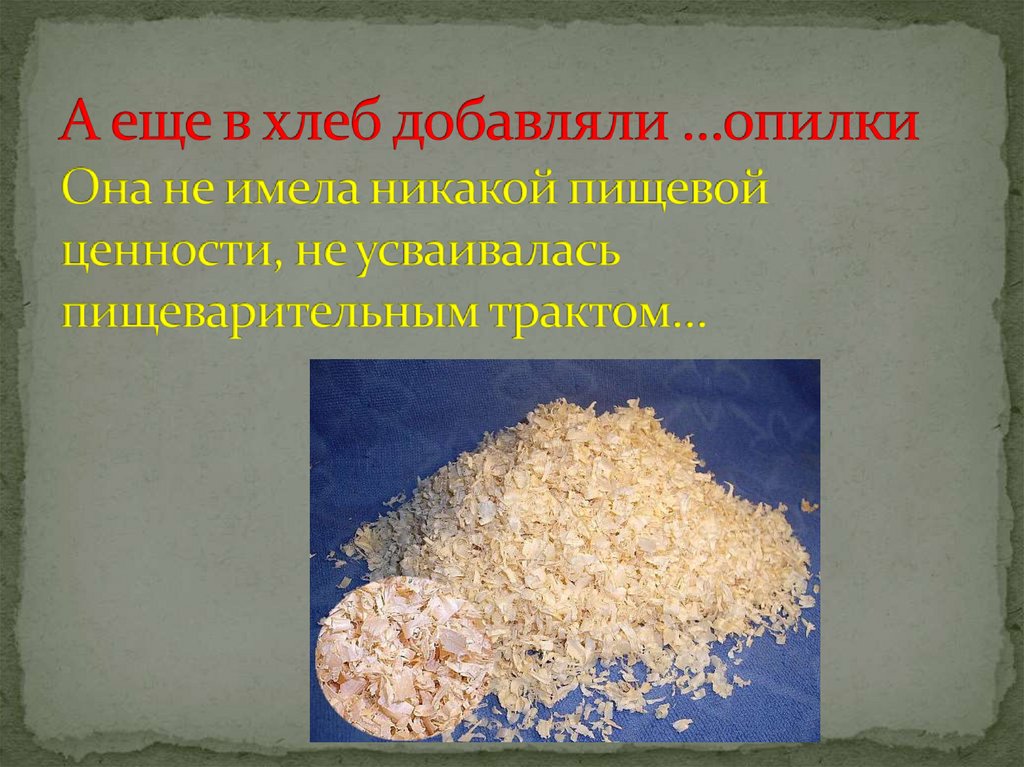 Не имела пищевой ценности. Но она заменяламуку по массе и увеличивала припек, ее было