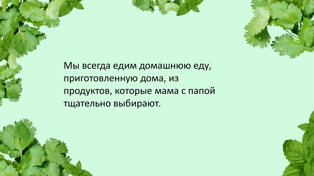 Мы всегда едим домашнюю еду,приготовленную дома, из