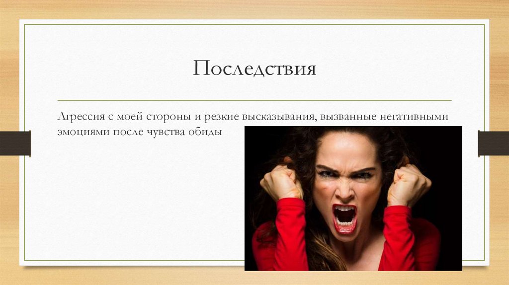 ПоследствияАгрессия с моей стороны и резкие высказывания, вызванные негативными