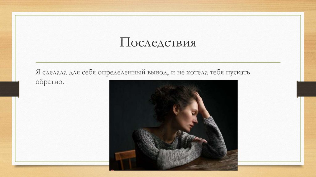 ПоследствияЯ сделала для себя определенный вывод, и не хотела тебя пускать
