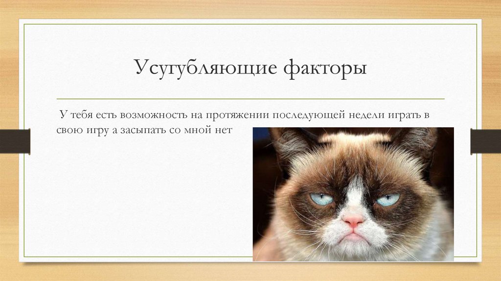 Усугубляющие факторыУ тебя есть возможность на протяжении последующей недели играть в