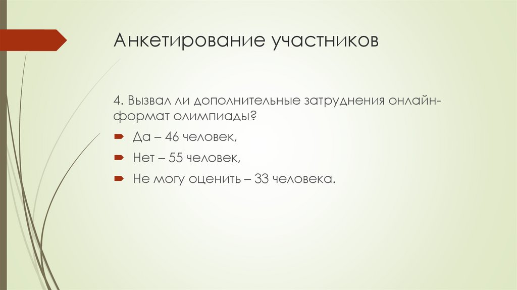 Анкетирование участников4. Вызвал ли дополнительные затруднения онлайнформат олимпиады?
