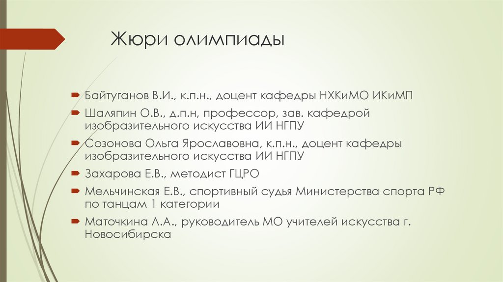 Жюри олимпиадыБайтуганов В.И., к.п.н., доцент кафедры НХКиМО ИКиМП