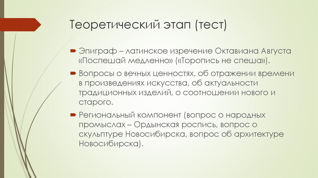 Теоретический этап (тест)Эпиграф – латинское изречение Октавиана Августа