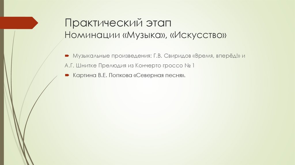 Практический этапНоминации «Музыка», «Искусство»