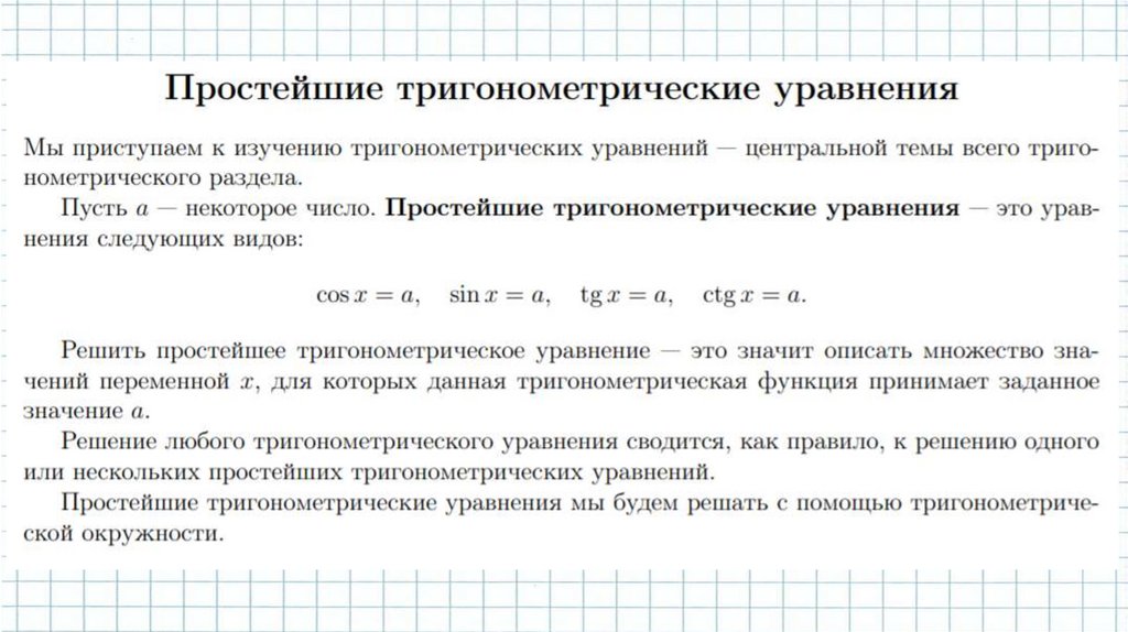 Тригонометрические уравнения. Простейшие тригонометрические уравнения