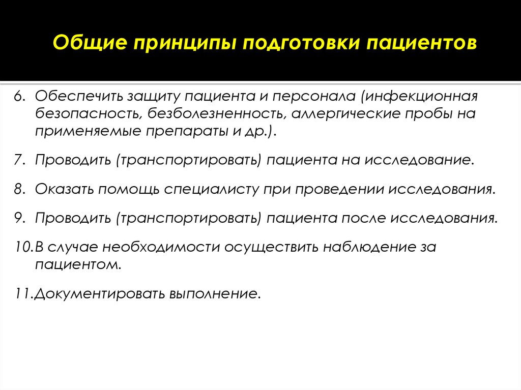 Общие принципы подготовки пациентов6. Обеспечить защиту пациента и персонала (инфекционная