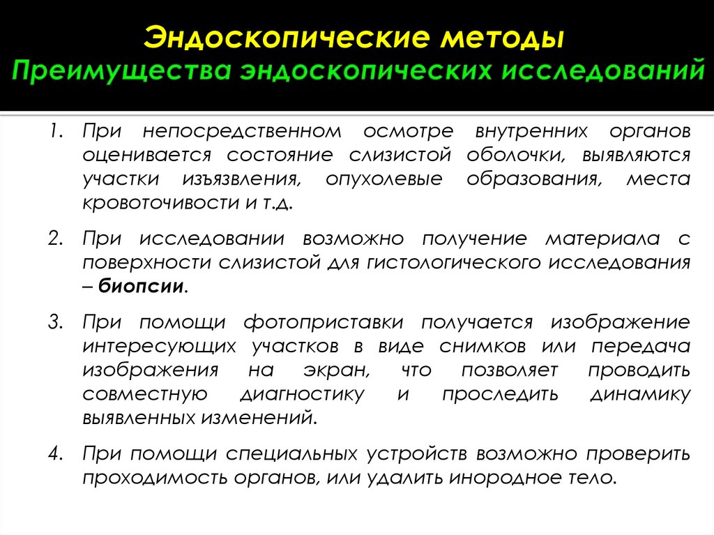Эндоскопические методыПри проведении эндоскопических исследований