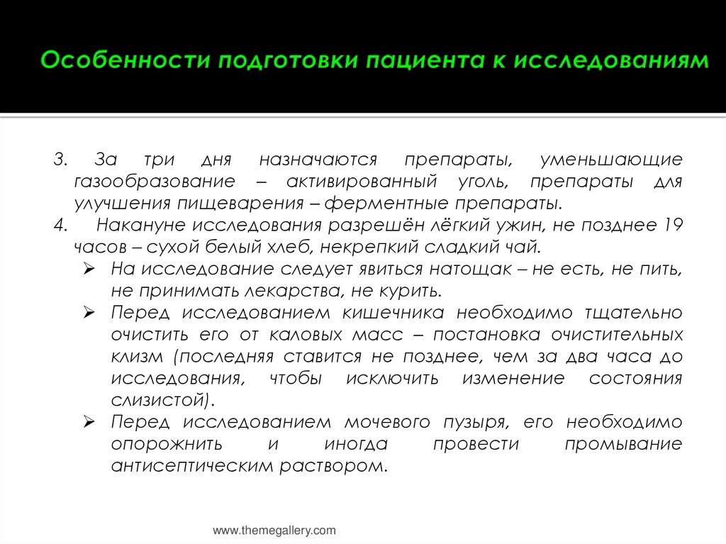 2.За 3 дня перед исследованием органов пищеварения