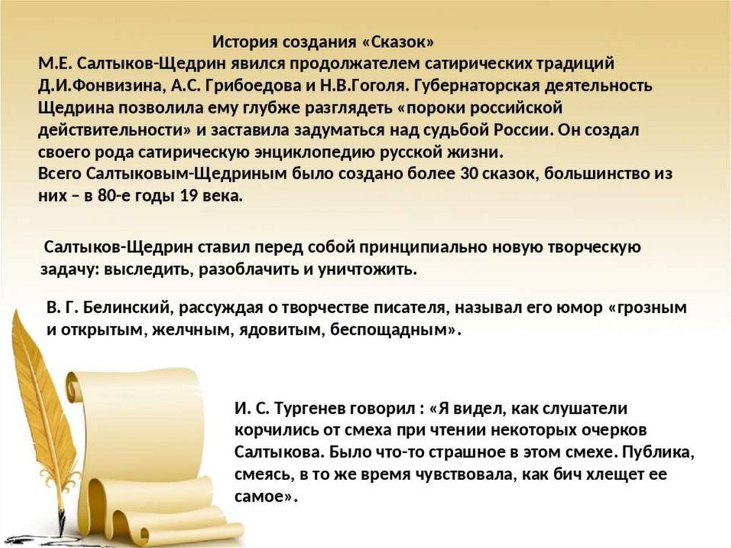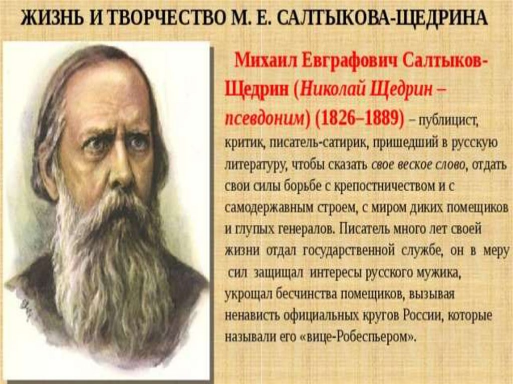 Изучение творчества Салтыкова-Щедрина Михаила Евграфовича (1826-1889)