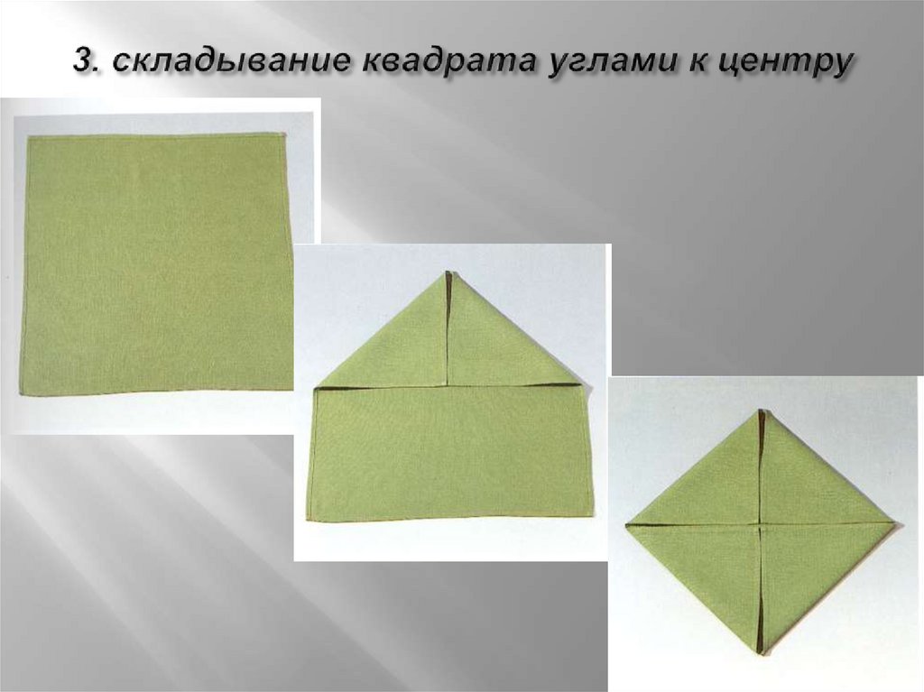 При складывании салфетки необходимо какможно меньше касаться ее пальцами;