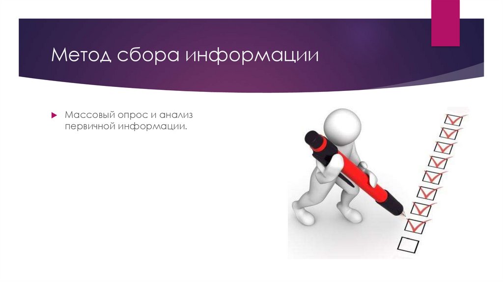 Метод сбора информацииМассовый опрос и анализ